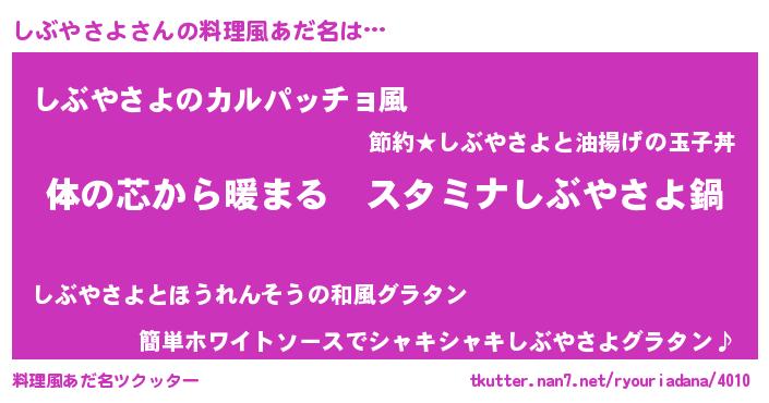 | 胡散臭い通販商品みたいなあだ名 | 『幸せが訪れる高級そうな壺…その名も「しぶやさよ」』 |