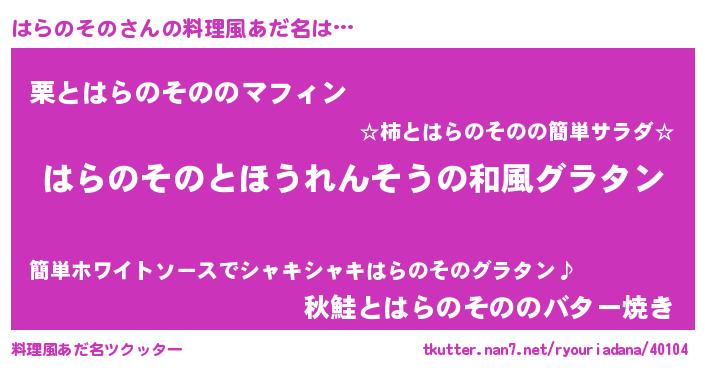 | 胡散臭い通販商品みたいなあだ名 | 『前代未聞の健康食品…その名も「はらのその」』 |