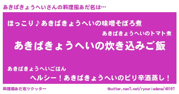 | 恥ずかしいあだ名 | 『プリティーあきばきょうへい』 |