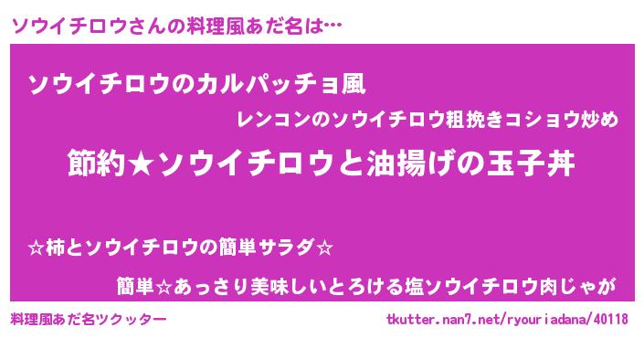 | 胡散臭い通販商品みたいなあだ名 | 『モテモテ間違いなし霊験あらたかなお札…その名も「ソウイチロウ」』 |