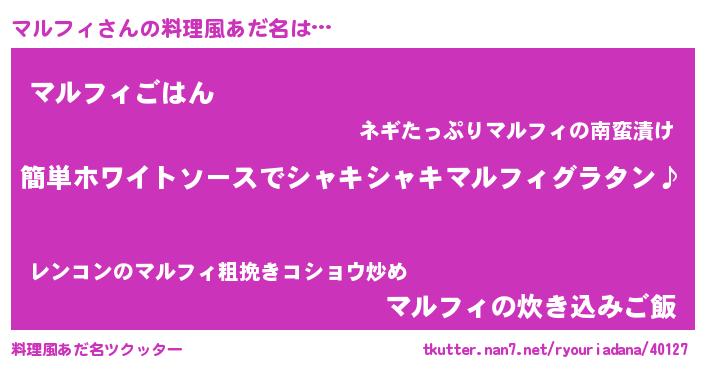 | 男性向けラノベタイトル風あだ名 | 『マルフィの嫁は女の子じゃないと思った?』 |