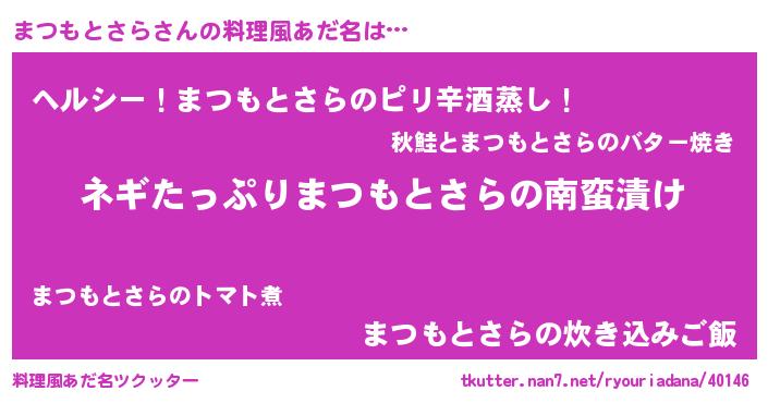 | ヘコむあだ名 | 『まつふぇ~』『まつもとさら(爆)』 |