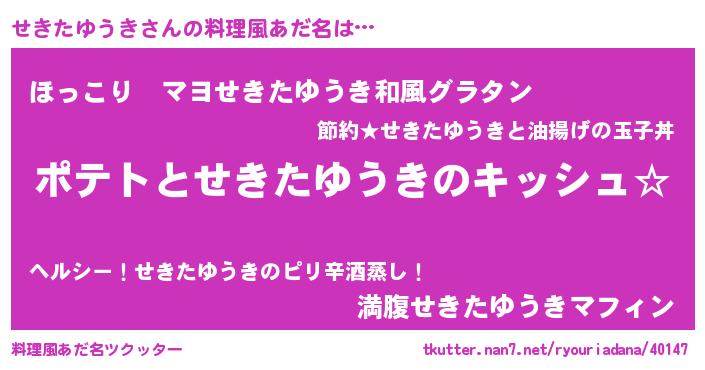 | ヘコむあだ名 | 『せきを』『せきたゆうき(苦笑)』 |