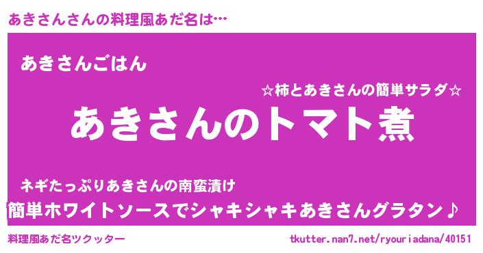 | ピコ太郎風あだ名 | 『アア太郎』『アキ五郎』『アコ六郎』 |