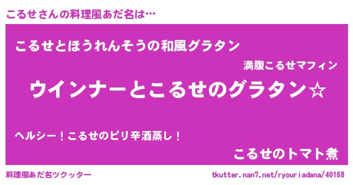 | 男性向けラノベタイトル風あだ名 | 『やはりこるせの青春ラブコメはまちがっている 』 |