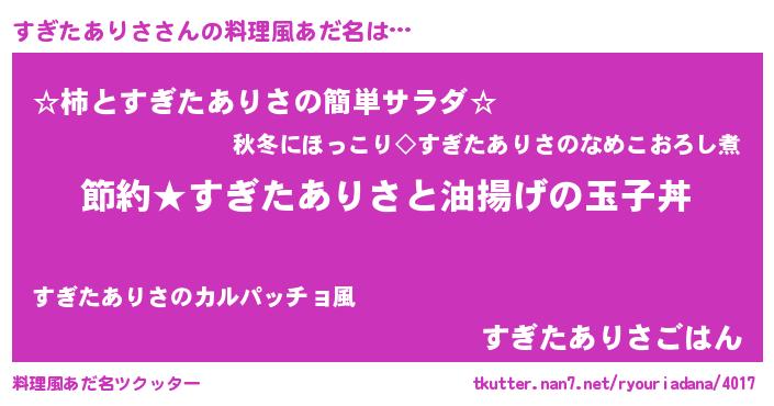 | 男性向けラノベタイトル風あだ名 | 『スギタアリサアートオンライン』 |
