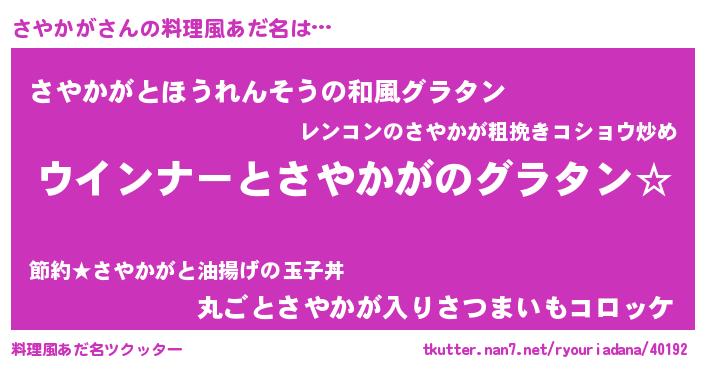 | ポケモン風あだ名 | 『サヤカダネ』『サヤキング』 |