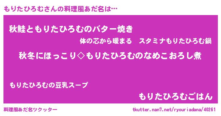 | ヘコむあだ名 | 『もりたひろむ(震え声)』『豆乳』 |