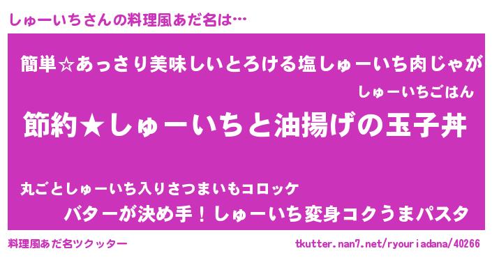 | ヘコむあだ名 | 『しゅふぇ~』『しゅーいち(笑)』 |
