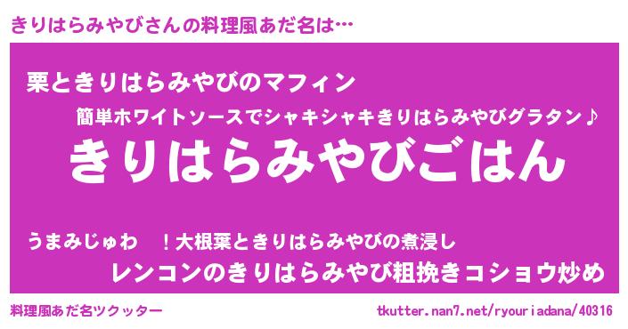 | 恥ずかしいあだ名 | 『キリハラミヤビデラックス』『きりちん』 |