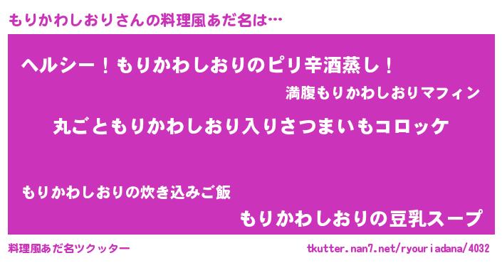 | ヘコむあだ名 | 『もりお』『もりかわしおり(笑)』 |