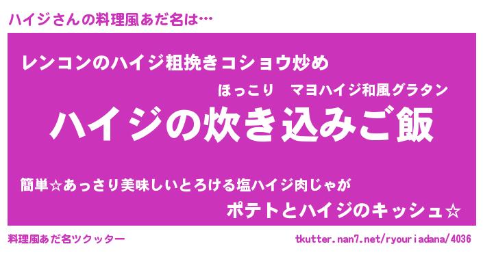 | ピコ太郎風あだ名 | 『ハイ次郎』『ピコハ郎』『ピハ四郎』 |