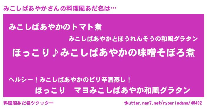 | 欧米人風あだ名 | 『マイケルみこしばあやか』 |