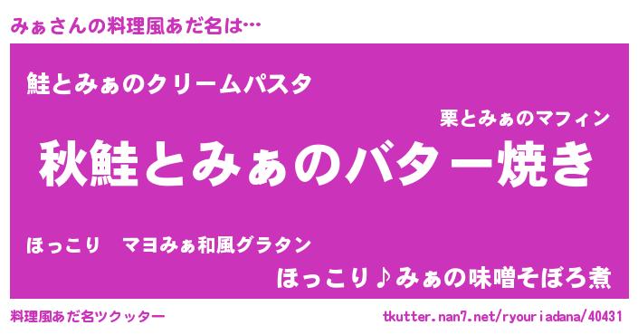 | ヘコむあだ名 | 『みぁ(爆)』『みぁもー』『つくし』 |