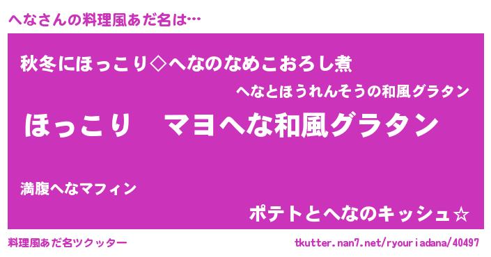 | 意味不明あだ名 | 『住所不定無職へな(84歳)』『永久保存へな』 |