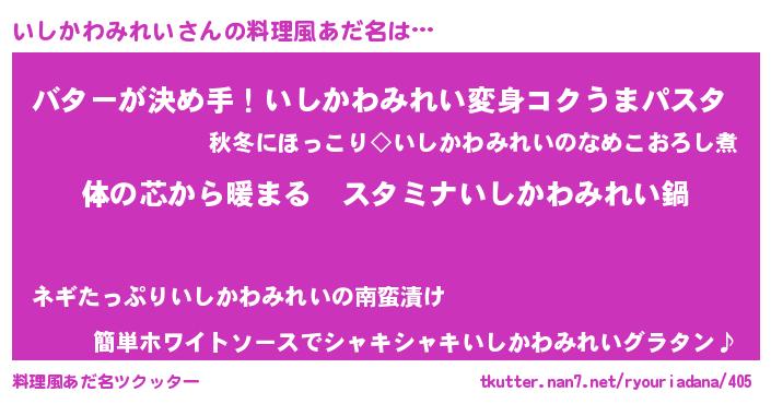| 欧米人風あだ名 | 『いしかわみれいクリステル』 |