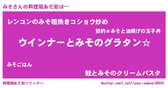 | ヘコむあだ名 | 『なまこ酢』『みそにー』『みそ太郎』 |