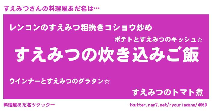 | 意味不明あだ名 | 『自称すえみつ』『すえみつフォーエバー』 |