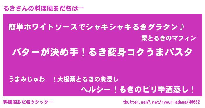 | 女子向けラノベタイトル風あだ名 | 『るき恋絵巻』『るき様がみてる』 |