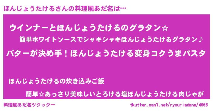 | ヒーロー風カッコイイあだ名 | 『慈愛の使者ほんじょうたける』 |