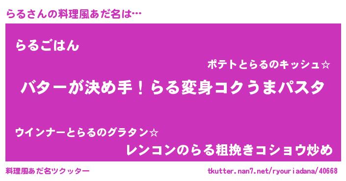 | 意味不明あだ名 | 『眠気覚ましガムらる味』『自称らる』 |