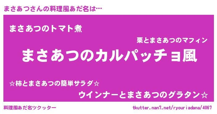| 男性向けラノベタイトル風あだ名 | 『魔弾の王とまさあつ』『緋弾のマサアツ』 |