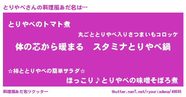 | 意味不明あだ名 | 『とりやべフォーエバー』 |