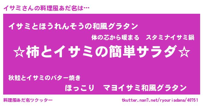 | ヒーロー風カッコイイあだ名 | 『仮面イサダー』『ウルトライサミマン』 |