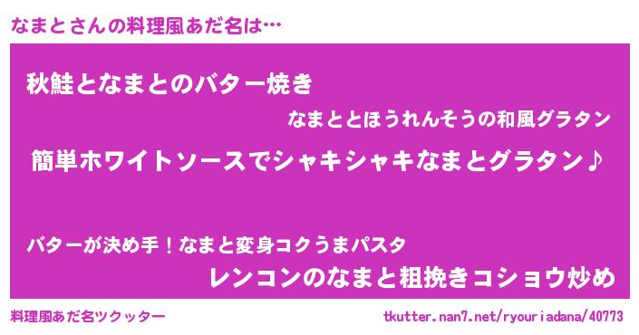 | 意味不明あだ名 | 『とにかく怪しいなまと』『自称なまと』 |