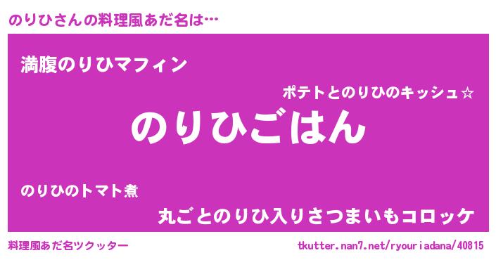 | 男性向けラノベタイトル風あだ名 | 『ノリヒスレイヤー』『魔弾の王とのりひ』 |
