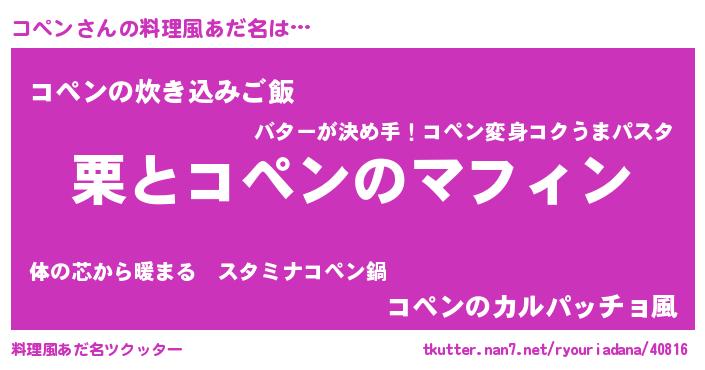 | 意味不明あだ名 | 『住所不定無職コペン(59歳)』 |