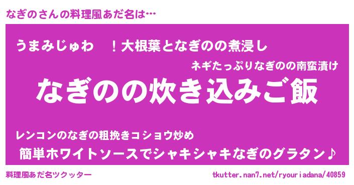 | ヘコむあだ名 | 『なまこ酢』『なぎを』 |