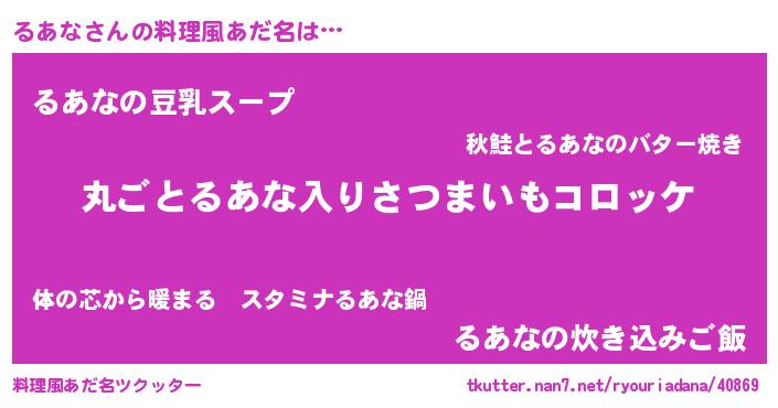 | 女子向けラノベタイトル風あだ名 | 『乙女ゲームの破滅フラグしかない悪役るあなに転生してしまった…』 |
