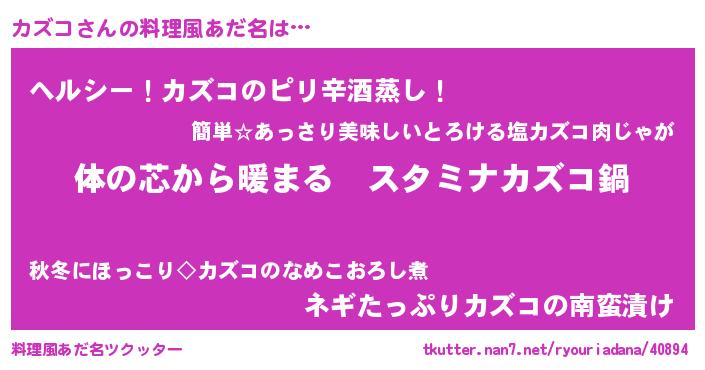 | 女子向けラノベタイトル風あだ名 | 『カズコの雑貨屋さん』 |