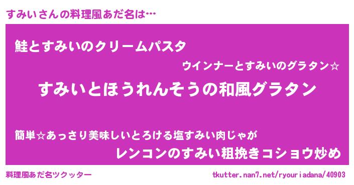 | 意味不明あだ名 | 『ニラ科すみい属』『自称すみい』 |