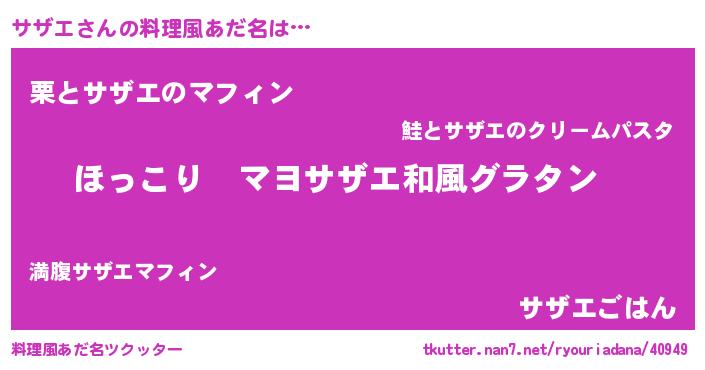 | 男性向けラノベタイトル風あだ名 | 『この素晴らしい世界にサザエを!』 |