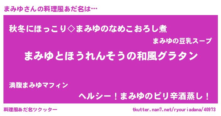 | 意味不明あだ名 | 『ニラ科まみゆ属』『自称まみゆ』 |