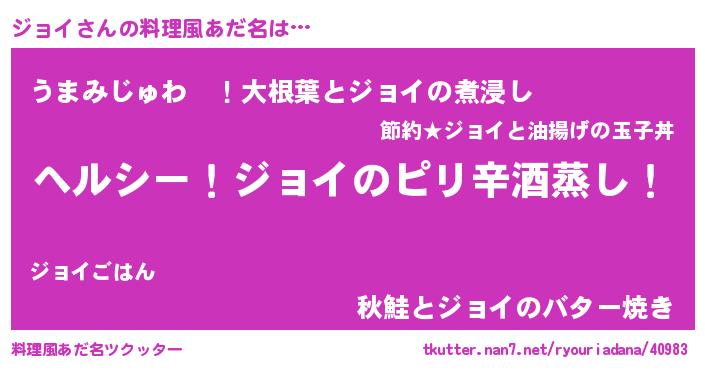 | 意味不明あだ名 | 『自称ジョイ』『ジョイフォーエバー』 |