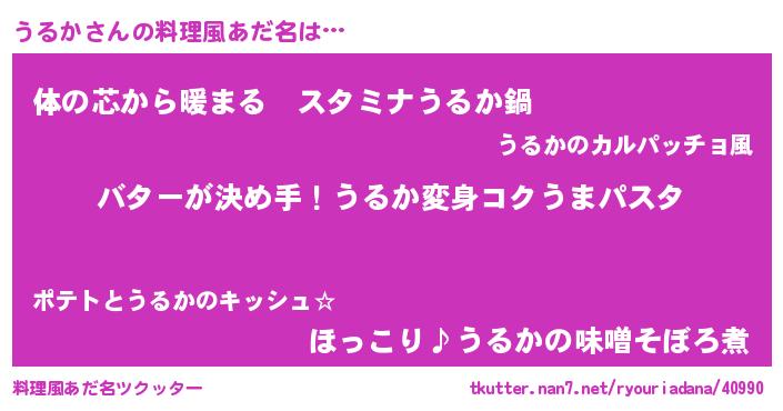 | 女子向けラノベタイトル風あだ名 | 『うるか恋絵巻』『うるかの雑貨屋さん』 |