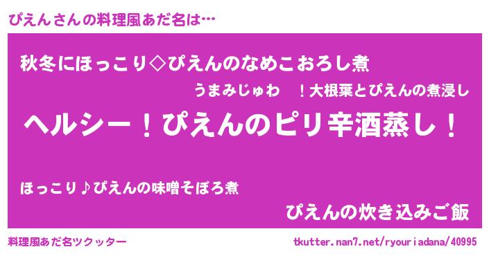 | ピコ太郎風あだ名 | 『ピピ太郎』『ピコ五郎』『ピピ太郎』 |