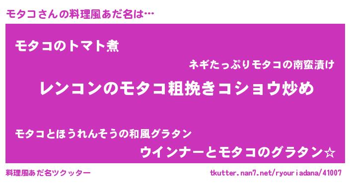 | 女子向けラノベタイトル風あだ名 | 『モタコなんてお断りですっ。』 |
