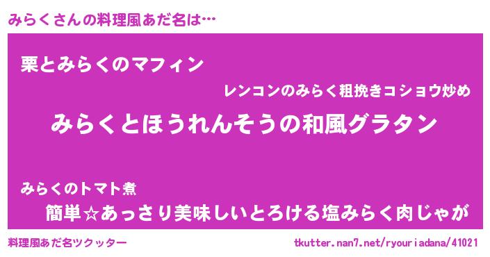 | 意味不明あだ名 | 『もやし科みらく属』『永久保存みらく』 |
