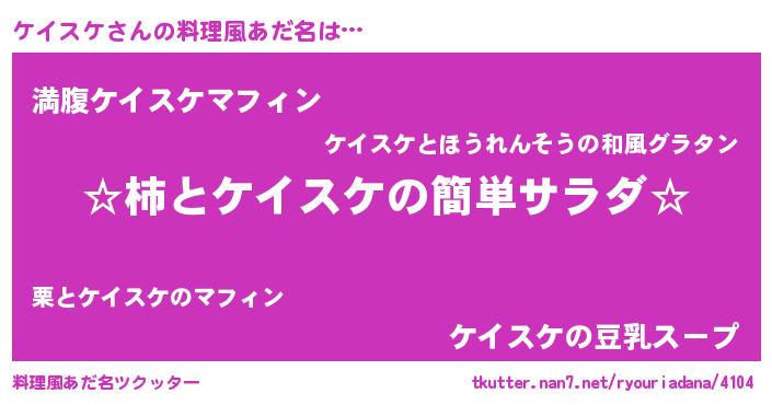 | ヒーロー風カッコイイあだ名 | 『ネオケイスケ』『暗黒騎士ケイ』 |