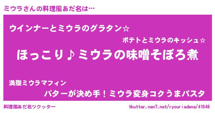 | ヘコむあだ名 | 『ミウにー』『なまこ酢』『ミウっぺ』 |