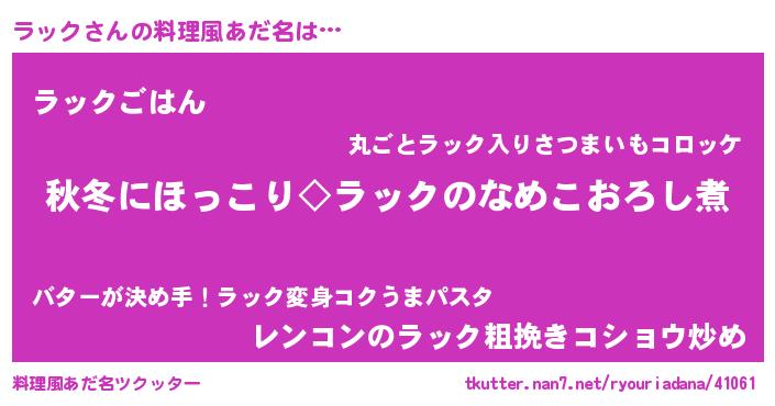 | ヘコむあだ名 | 『ラッふぇ~』『ラック(震え声)』 |