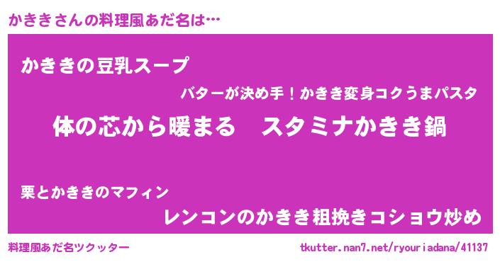 | 女子向けラノベタイトル風あだ名 | 『かききの雑貨屋さん』『かきき恋絵巻』 |
