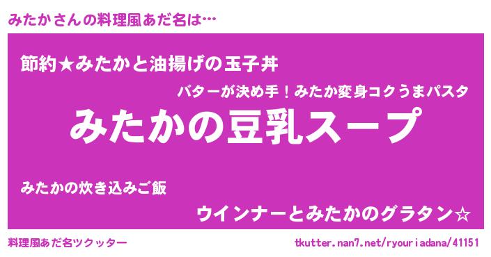 | 女子向けラノベタイトル風あだ名 | 『みたかは平凡を望む』『みたか恋絵巻』 |