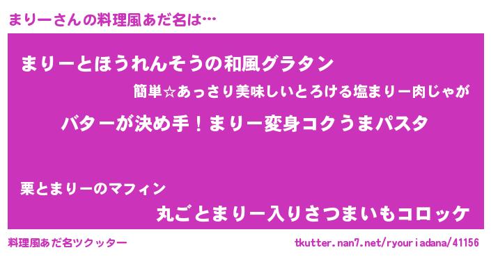 | 女子向けラノベタイトル風あだ名 | 『まりー恋絵巻』『まりーの玉の輿計画!』 |