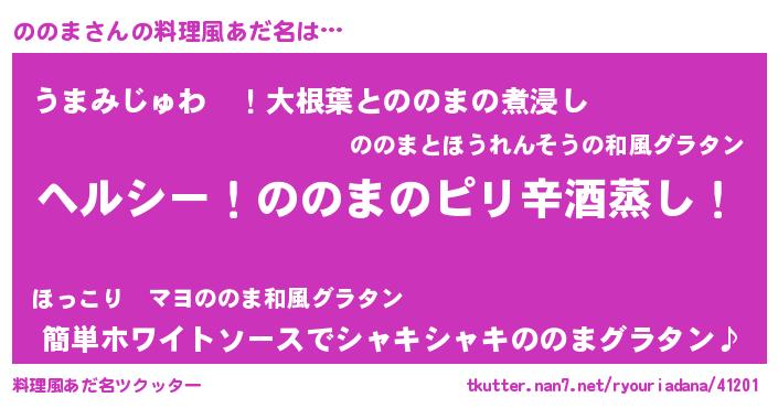 | ヒーロー風カッコイイあだ名 | 『サイバー戦士ノノマ』『炎刃騎士ノノ』 |