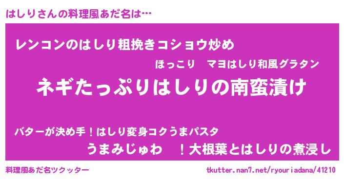 | ヘコむあだ名 | 『はしっふぃ~』『つくし』 |